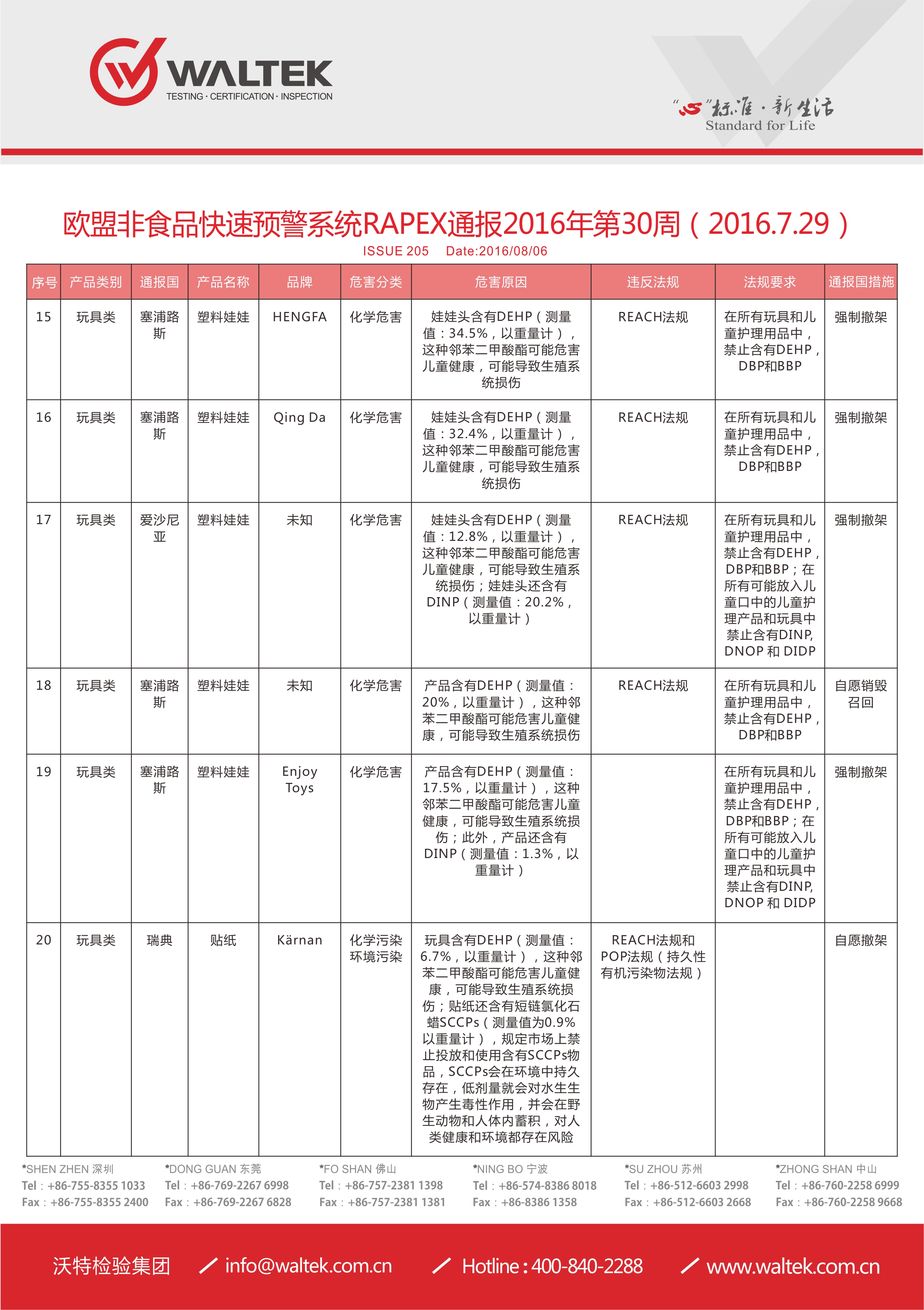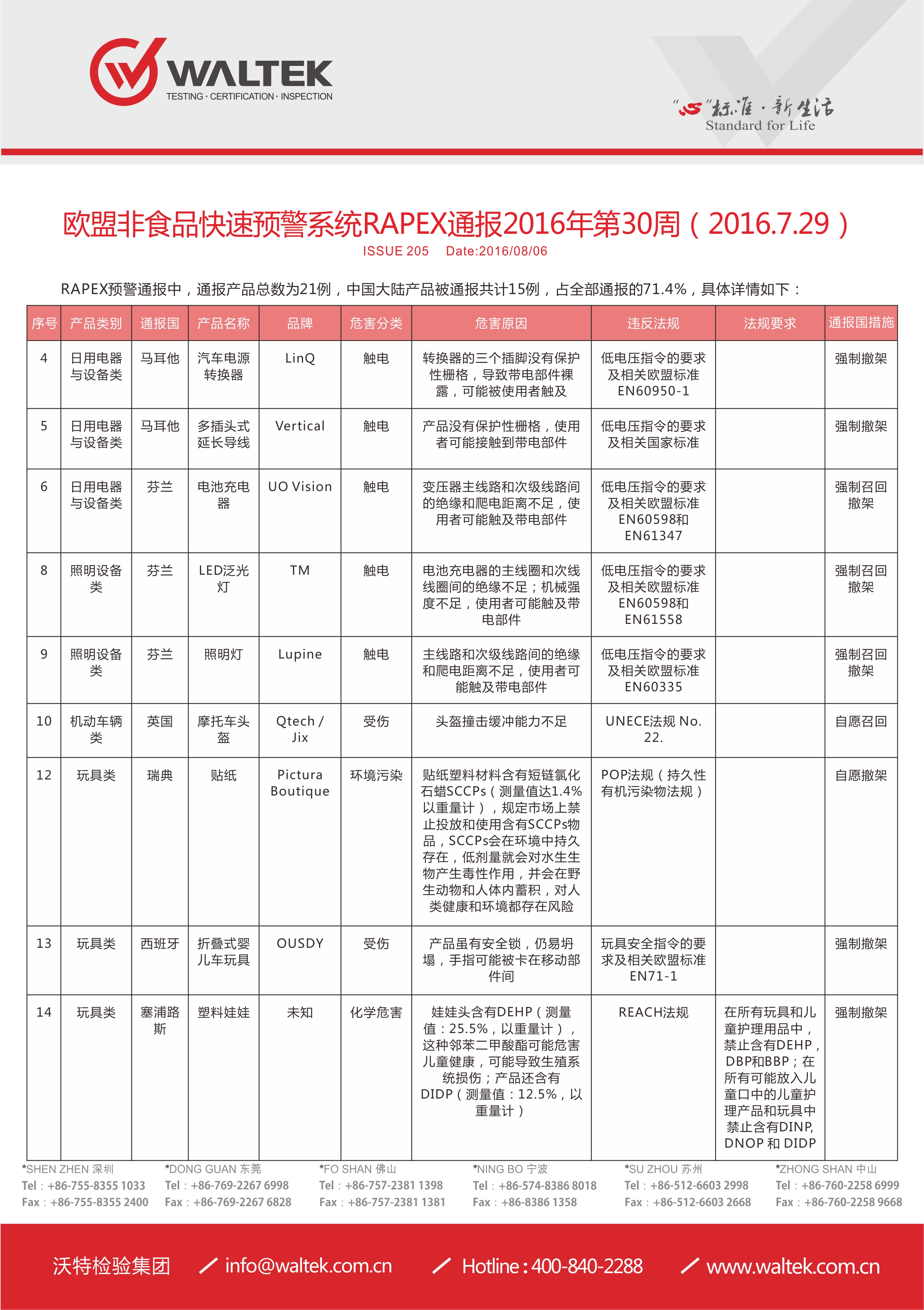第205期 歐盟非食品快速預(yù)警系統(tǒng)RAPEX通報2016年第30周2