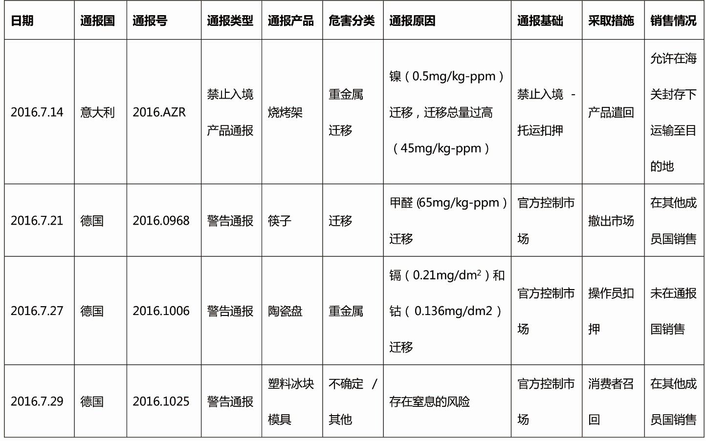 7月份食品接觸材料產(chǎn)品預(yù)警信息通報(bào)