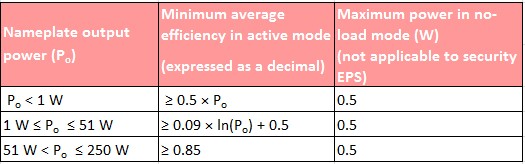 Table 1: Proposed MEPS for indirect operation Class A EPS (aligned with U.S. DOE Code of Federal Regulations (CFR) Title 10 Section 430.32)