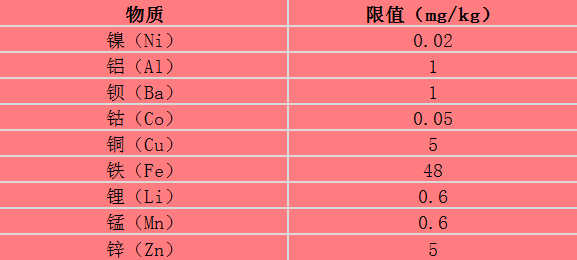 1.新增附錄II部分鎳的遷移限量。更新后的重金屬特定遷移限量如下表所示