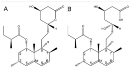 ▲紅曲米含有兩種主要形式的莫納可林K:A內(nèi)酯(非活性)和B羥酸(活性)。
