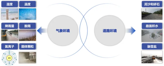 汽車制造所用的材料以金屬為主,在使用過程中受到各種環(huán)境因素的影響,如工業(yè)污染、高溫高濕、道路石擊、沿海城市海洋性氣候及寒冷地區(qū)融雪鹽使用等,這些環(huán)境因素加速了汽車的腐蝕。影響汽車腐蝕的環(huán)境可以分為氣象環(huán)境和道路環(huán)境。