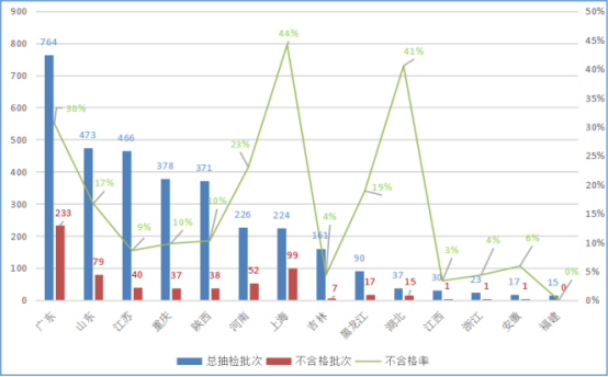 ● 抽檢總批次前三的省份為:廣東、山東和江蘇