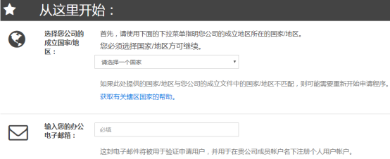 選擇國(guó)家,填寫注冊(cè)的郵箱。