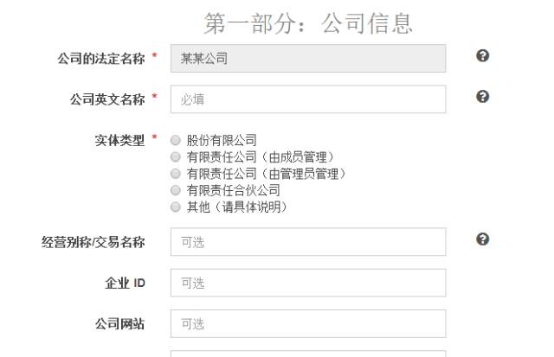 注意:以上選項(xiàng)除去公司法定名稱之外一律填寫英文!