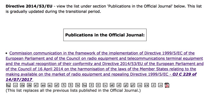 歐盟RED指令(2014/53/EU)協(xié)調(diào)標(biāo)準(zhǔn)更新20170714