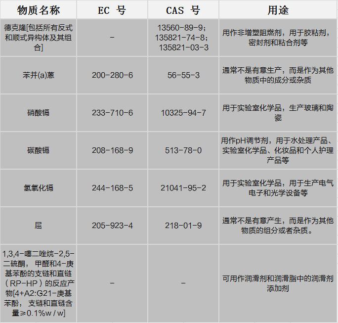 2017年12 月20日,歐盟成員國委員會(MSC)同意將7物質(zhì)列入高度關(guān)注物質(zhì)清單。