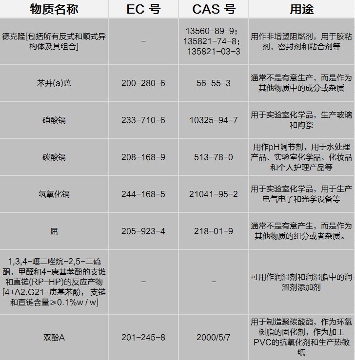 2018年1 月15日,歐洲化學品管理局(ECHA)發(fā)布第十八批7種高度關注物質(SVHC),REACH高度關注物質正式增至181項,并新增現(xiàn)有物質雙酚A(BPA)的環(huán)境內分泌干擾屬性。