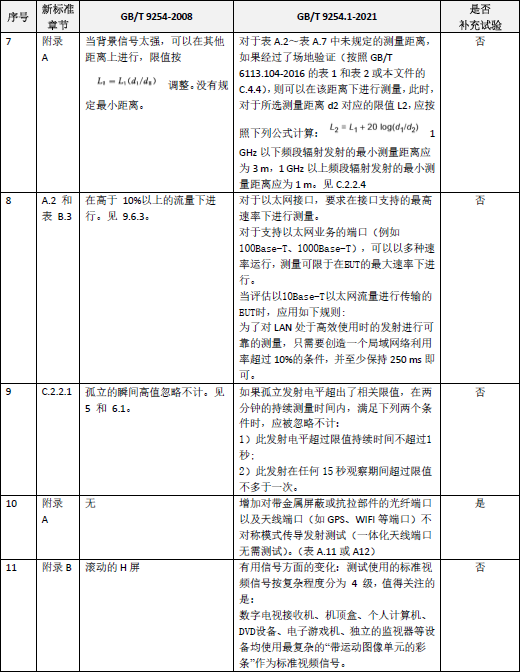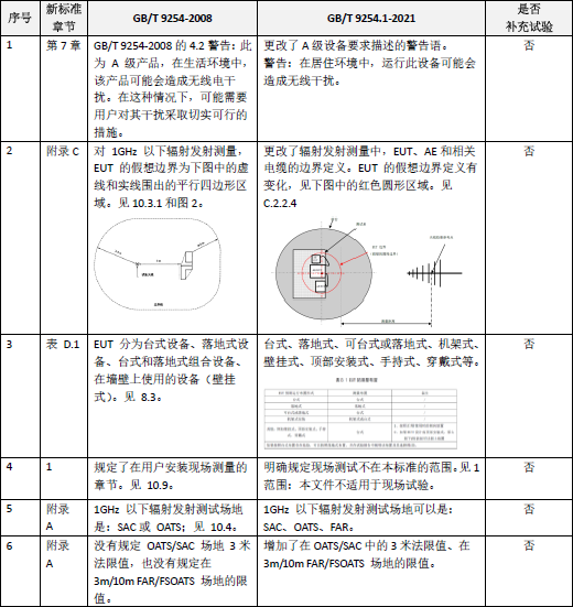 附件一:關(guān)于GB/T 9254.1-2021與GB/T 9254-2008標(biāo)準(zhǔn)主要差異和補(bǔ)充試驗(yàn)要求