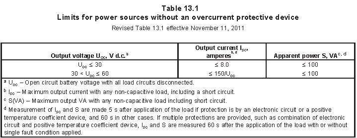 注:C5為電池滿電狀態(tài)下持續(xù)放電5小時(shí)后的電壓(按照廠家標(biāo)稱);另外測(cè)試過(guò)程需要失效過(guò)程保護(hù)裝置(除了符合UL1434或者UL60730-1A認(rèn)證的元件以外,因?yàn)闃?biāo)準(zhǔn)判定這兩個(gè)標(biāo)準(zhǔn)認(rèn)證的元件符合安全規(guī)范)。