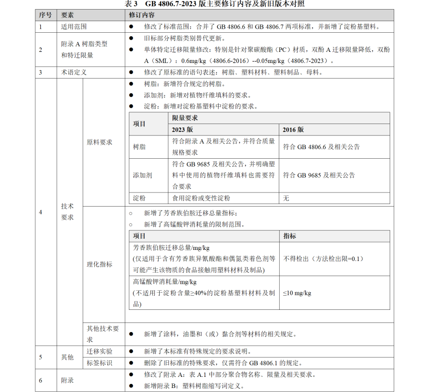三﹑GB 4806.7-2023 食品接觸用塑料材料及制品