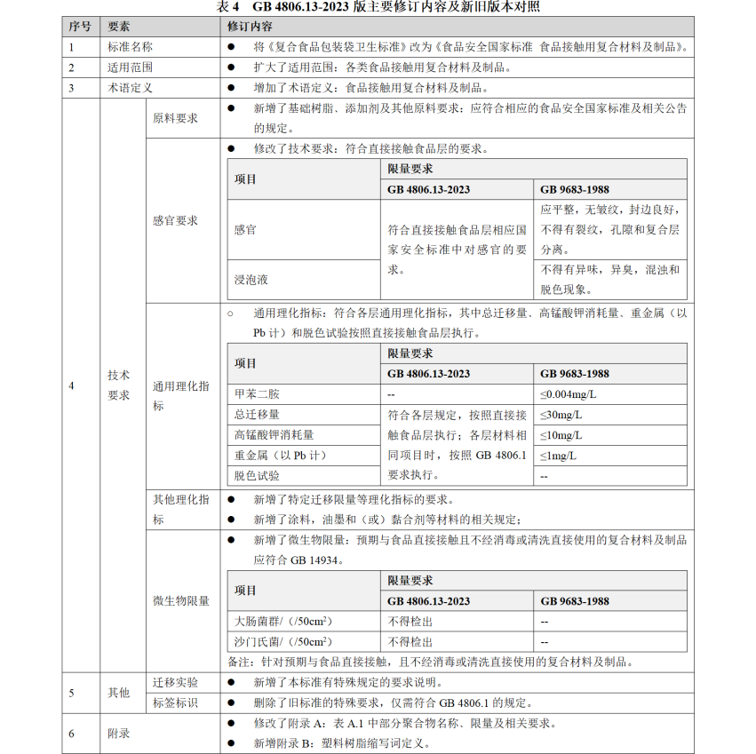 四﹑GB 4806.13-2023 食品接觸用復合材料及制品