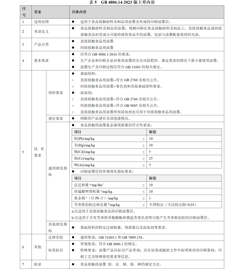 五﹑GB 4806.13-2023 食品接觸材料及制品用油墨