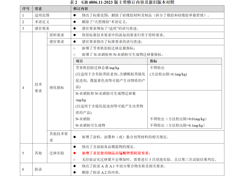 二﹑GB 4806.11-2023 食品接觸用橡膠材料及制品