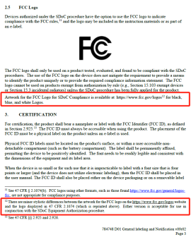 在第2.5章節(jié)中增加了關(guān)于獲取FCC標(biāo)識(shí)插圖的說(shuō)明,并增加了注釋12以澄清在FCC網(wǎng)站上的作品和47 CFR 2.1074規(guī)則中顯示的FCC標(biāo)志之間以及一些的語(yǔ)法編輯風(fēng)格的細(xì)微差異。注釋解釋: 任何一種版本都可以與SDoC設(shè)備授權(quán)程序一起使用。