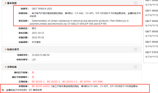 GB/T 39560系列測試標準都是等同采用的IEC 62321系列測試方法(見下圖),國家認監(jiān)委此次公布并調(diào)整中國RoHS有害物質(zhì)的測試方法后,意味著中國RoHS將和國際正式接軌,大大的提高了RoHS檢測數(shù)據(jù)的通用性。