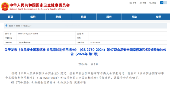 重磅!GB 2760-2024《食品安全國(guó)家標(biāo)準(zhǔn) 食品添加劑使用標(biāo)準(zhǔn)》正式發(fā)布