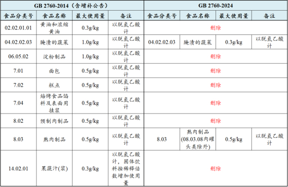 脫氫乙酸及其鈉鹽使用規(guī)定的變化