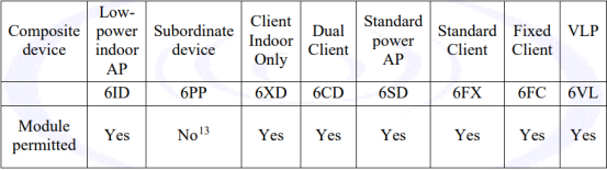 FCC更新了法規(guī)47 CFR Part 15 Subpart E,允許設(shè)備等級(jí)為6VL的VLP設(shè)備類型工作在U-NII-5 (5.925-6.425 GHz) and U-NII-7 (6.525-6.875 GHz) 6HGz頻段,于2024年3月8日生效。