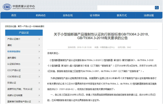 標(biāo)準(zhǔn)換版丨關(guān)于小型熔斷體用熔斷器支持件產(chǎn)品認(rèn)證執(zhí)行新版標(biāo)準(zhǔn)和認(rèn)證規(guī)則的通知