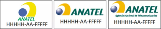 該法案定義了ANATEL標(biāo)識(shí)的具體應(yīng)用情形。ANATEL批準(zhǔn)的產(chǎn)品標(biāo)識(shí)必須使用以下三種規(guī)定形式的其中之一。
