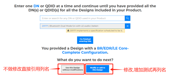 a) 網(wǎng)上列名的操作流程已全變更了,這個問題不大,相信大家操作摸索過一段時間后,還是挺方便好用的,主要是到第二步“指定設(shè)計Specify the Design”時有兩個選項:一是針對參考的QDID(DN)號不做任何修改直接引用列名,這個類似舊版No report Listing;二是針對參考QDID號有做修改,這個需要重新測試上傳報告進行列名,類似with report Listing,如下圖所示: