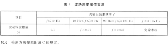 5. 燈具在其額定電壓下工作時(shí),其光輸出波形的波動(dòng)深度應(yīng)不大于表4的限值要求。