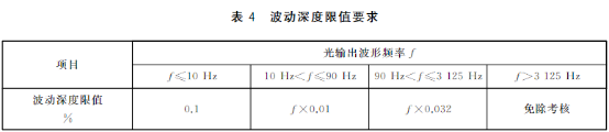 4. 燈具在其額定電壓工作時(shí),其光輸出波形的波動(dòng)深度應(yīng)符合表4的要求。