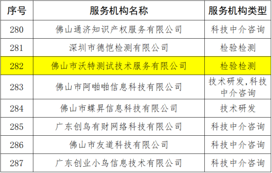 根據(jù)《佛山市科技創(chuàng)新券實施方案(2020-2022)》《佛山市促進科學研究與技術(shù)服務(wù)業(yè)發(fā)展工作方案》等文件精神,佛山市科學技術(shù)局對申請2022年佛山市科技創(chuàng)新券服務(wù)機構(gòu)單位進行審查,經(jīng)專家組論證,同意佛山市沃特測試技術(shù)服務(wù)有限公司等69家服務(wù)機構(gòu)備案(名單詳見附件1)。