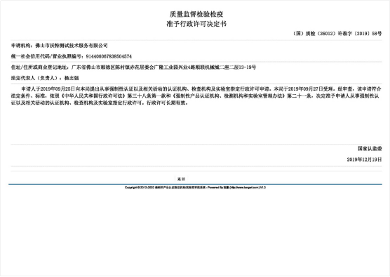 12月20日,中國國家認(rèn)證認(rèn)可監(jiān)督管理委員會(huì)(CNCA,以下簡稱“認(rèn)監(jiān)委”)發(fā)布了《認(rèn)監(jiān)委關(guān)于發(fā)布強(qiáng)制性產(chǎn)品認(rèn)證實(shí)施機(jī)構(gòu)和2019年第三批日常指定決定的公告》(公告(2019)25號(hào)),宣布沃特檢驗(yàn)集團(tuán)旗下佛山市沃特測(cè)試技術(shù)服務(wù)有限公司(以下簡稱“佛山沃特”)正式成為照明電器中國強(qiáng)制性產(chǎn)品認(rèn)證(CCC)指定實(shí)驗(yàn)室。