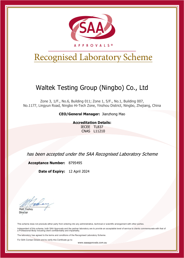 沃特檢驗(yàn)集團(tuán)寧波公司被正式列入澳洲SAA Approvals官方認(rèn)可實(shí)驗(yàn)室體系