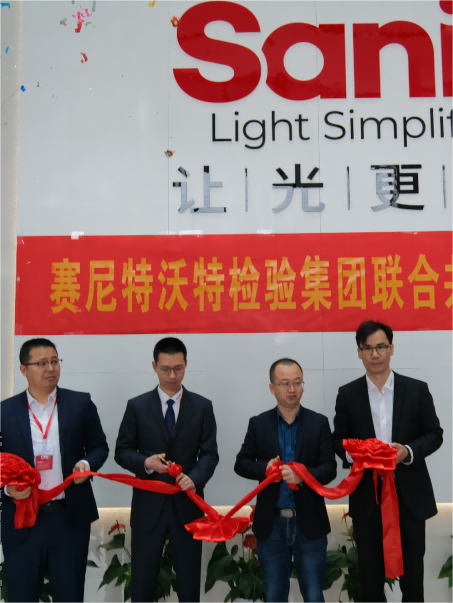 在眾人的共同見證下,賽尼特照明總經(jīng)理龔曉晨先生、副總經(jīng)理王立軍先生、實驗室負責(zé)人黃海雷先生及寧波沃特總經(jīng)理毛建忠先生共同進行了剪彩儀式。