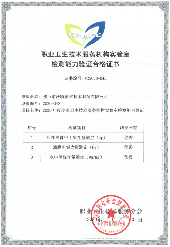 佛山沃特參加職業(yè)衛(wèi)生類與食品類兩項能力驗證獲得滿意結(jié)果