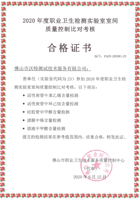 2020年度職業(yè)衛(wèi)生檢測(cè)實(shí)驗(yàn)室室間質(zhì)量控制比對(duì)考核 結(jié)果合格