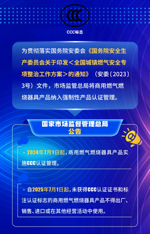 的通知》(安委[2023]3號(hào))文件,市場(chǎng)監(jiān)管總局將商用燃?xì)馊紵骶弋a(chǎn)品納入強(qiáng)制性產(chǎn)品認(rèn)" />