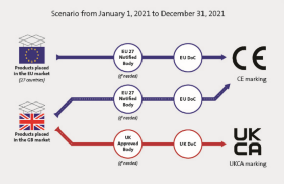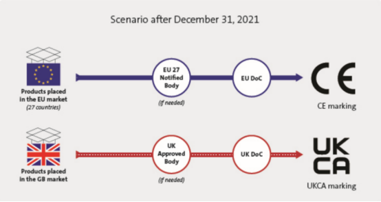 2022年1月1日起:英國將不再承認(rèn)CE標(biāo)志。注:只有產(chǎn)品帶UKCA標(biāo)志且符合英國的相關(guān)規(guī)則的情況下,帶有CE標(biāo)志的產(chǎn)品才可在英國銷售。即在同時(shí)滿足英國和歐盟法規(guī)且互不遮擋的情況下,可以在產(chǎn)品上同時(shí)使用CE和UKCA標(biāo)志。